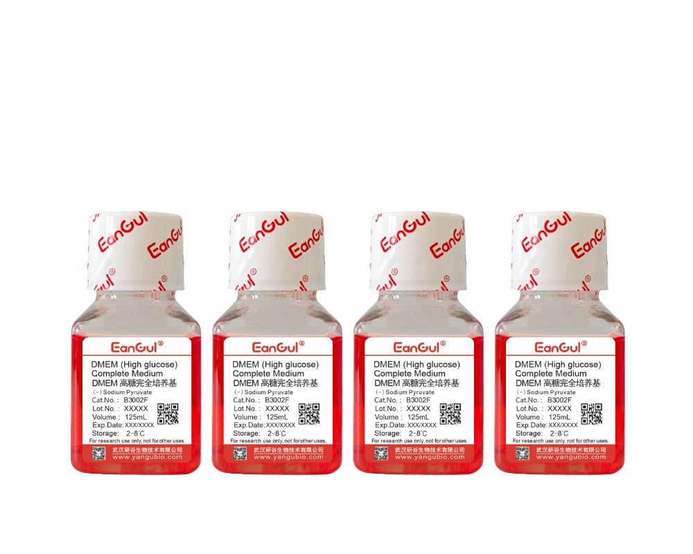 DMEM(Dulbecco's Modified Eagle Medium)是一种广泛应用于哺乳动物细胞培养的合成培养基,由 Eagle 培养基改良而来,因营养成分丰富、适用范围广而成为细胞生物学研究中的经典选择。DMEM 高糖完全培养基(无丙酮酸钠) 是在高糖 DMEM 基础培养基中添加血清、抗生素等成分后的终培养体系,且不含丙酮酸钠,适用于对该成分敏感或代谢需求特殊的细胞。产品使用便捷,无需额外添加其他成分,开盖即用。省去客户自行配液的麻烦和污染风险。